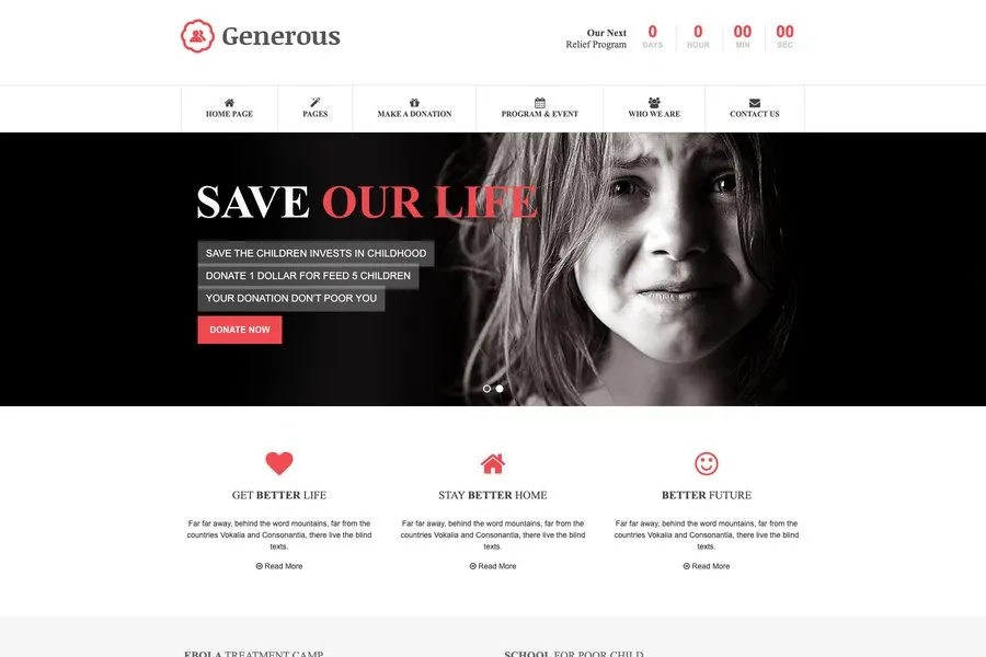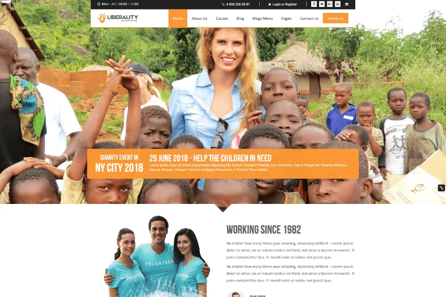 If you want to create a minimal and simple charity website, then you may consider Liberality Charity. You can use this template for fundraisers, donation foundations, non-profits, volunteering, and welfare institution. The design of the Liberality Charity is image-focused.