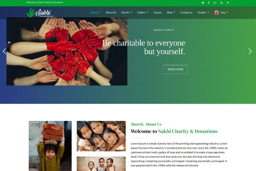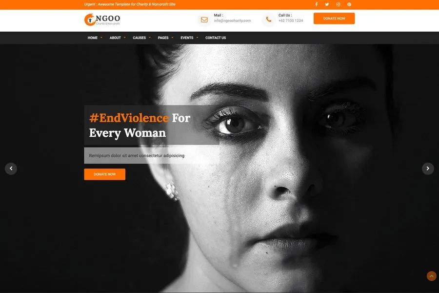 - 15+ Pre-designed pages (Home, About, Causes, Donation, Blog, Contact, and more)