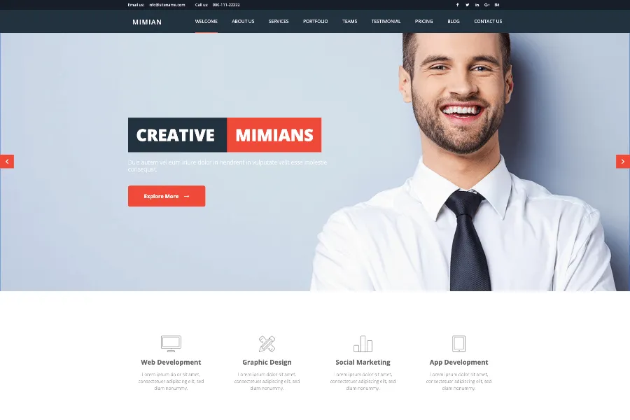 Mimiam is a modern, memorable, intuitive multipurpose one-page HTML template. The template looks posh, elegant, eye-soothing, mind-blowing, and professional. Do you know why? The template has been developed by a proficient designer and developer of the web industry.