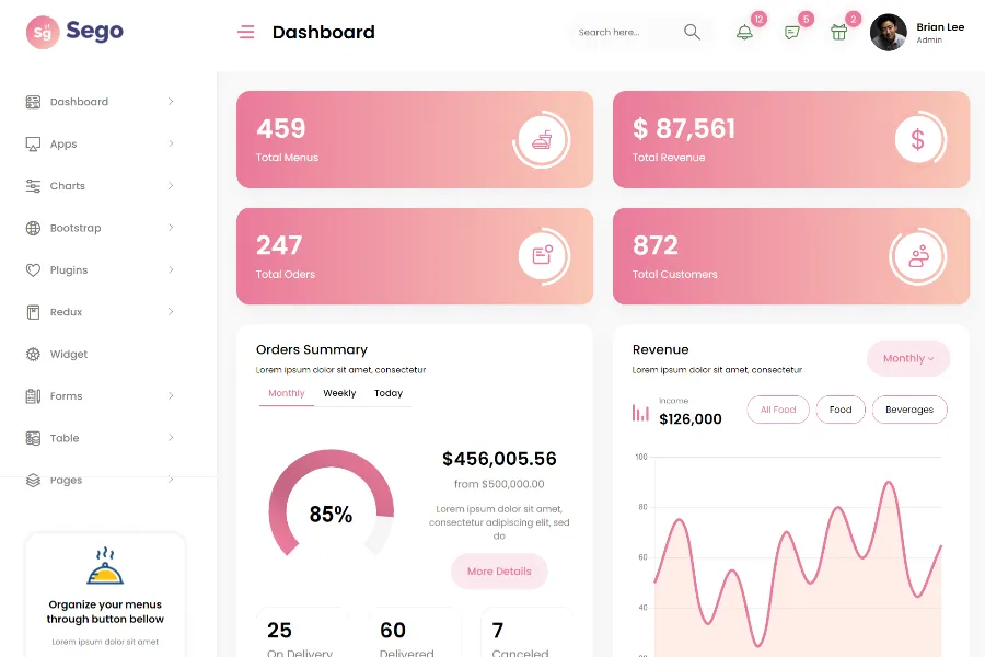 Sego - Restaurant Admin Dashboard Template