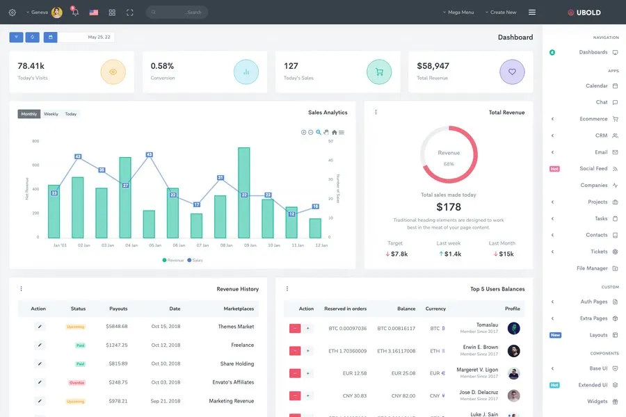 For the bold style and bold movement, you can never find a better alternative than Ubold. It has everything that you will need for your blog, article, or e-commerce website. This has all the elements that you will ever need for your dashboard.