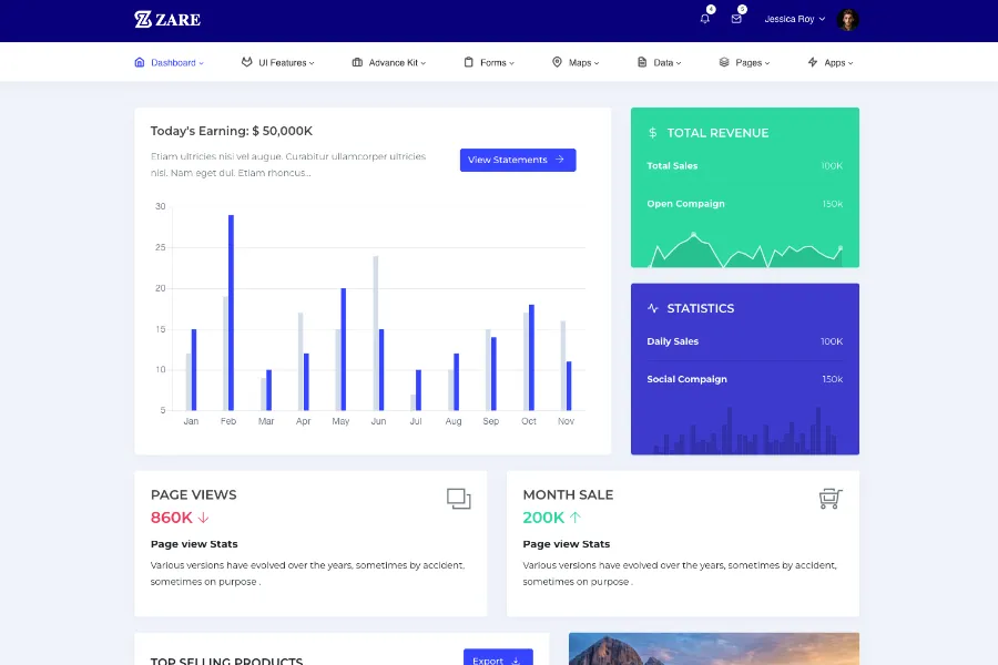 Zare has been specially designed for your e-commerce websites. Zare has several pre-setup dashboards that are ready for your e-commerce dashboards to use. The responsiveness also helps use the elements on your mobile phone. It also has numerous UI features and elements that make it the best of programmable web application templates.